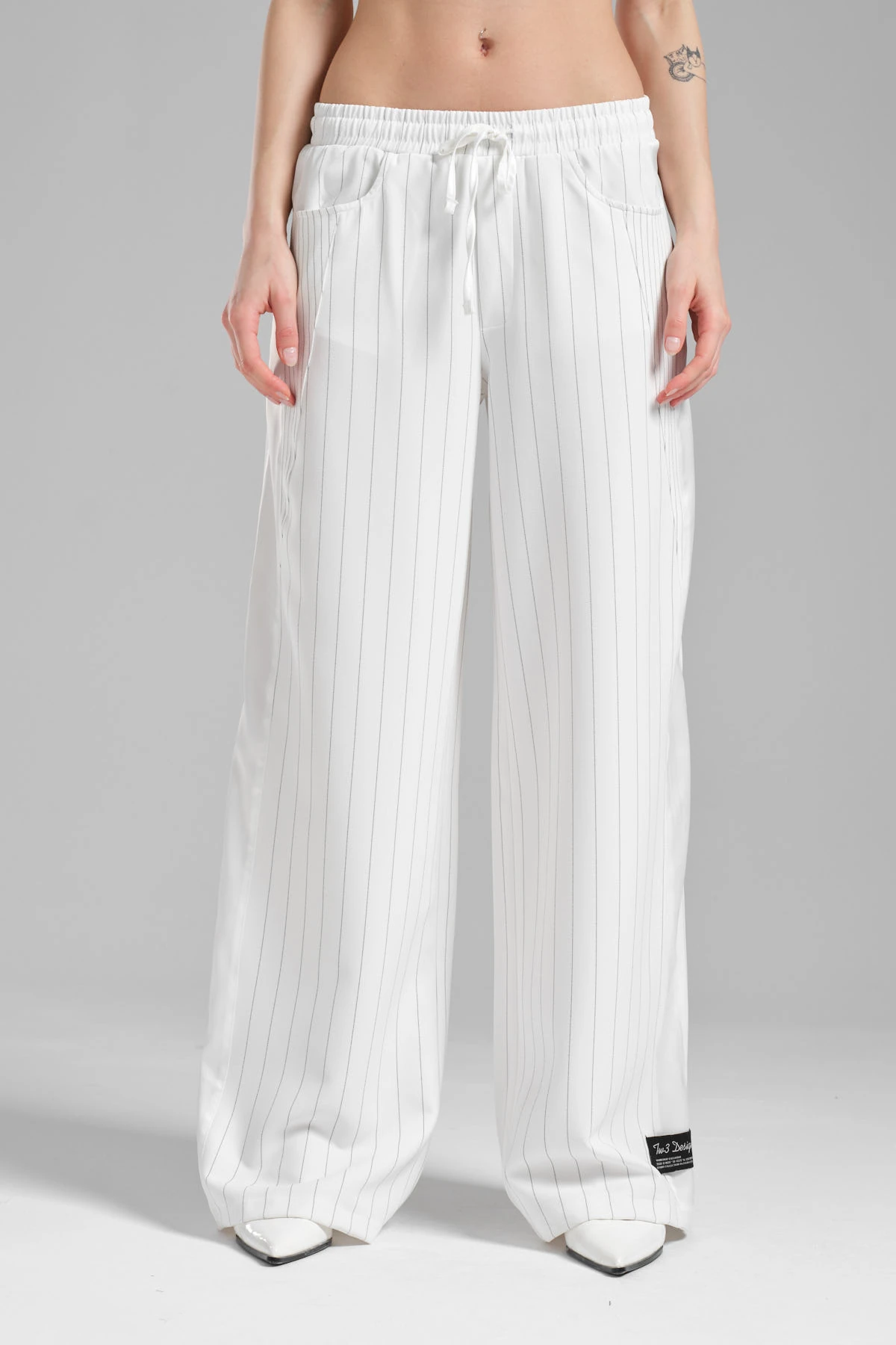 Women's Satin Fabric and Striped Fabric Detailed Design Blazer Jacket & Waist Elastic Design Trousers Combination